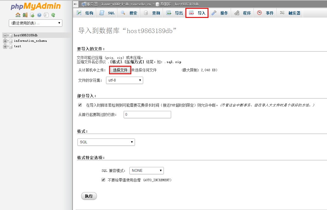 注:本地sql文件必須是在新網(wǎng)的MySQL服務(wù)器下使用phpmyadmin備份的數據庫。